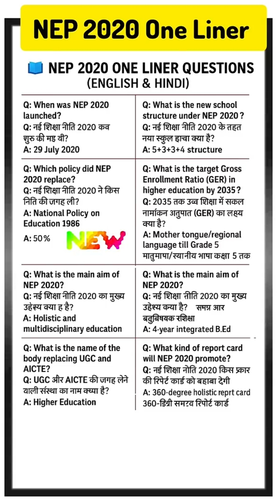 • ➤ NEP 2020 is the india’s third educational policy after NEP 1968 and 1986.